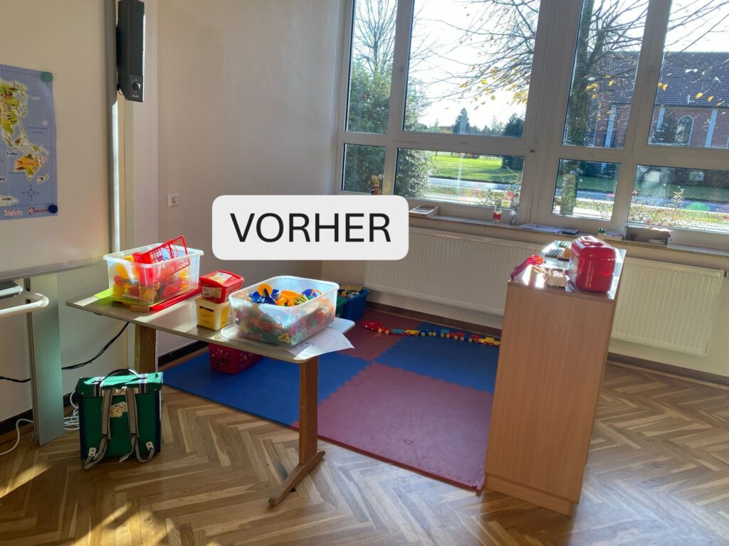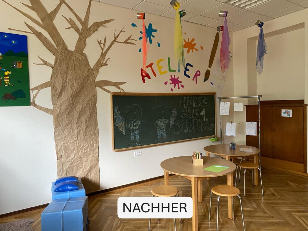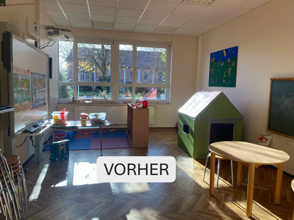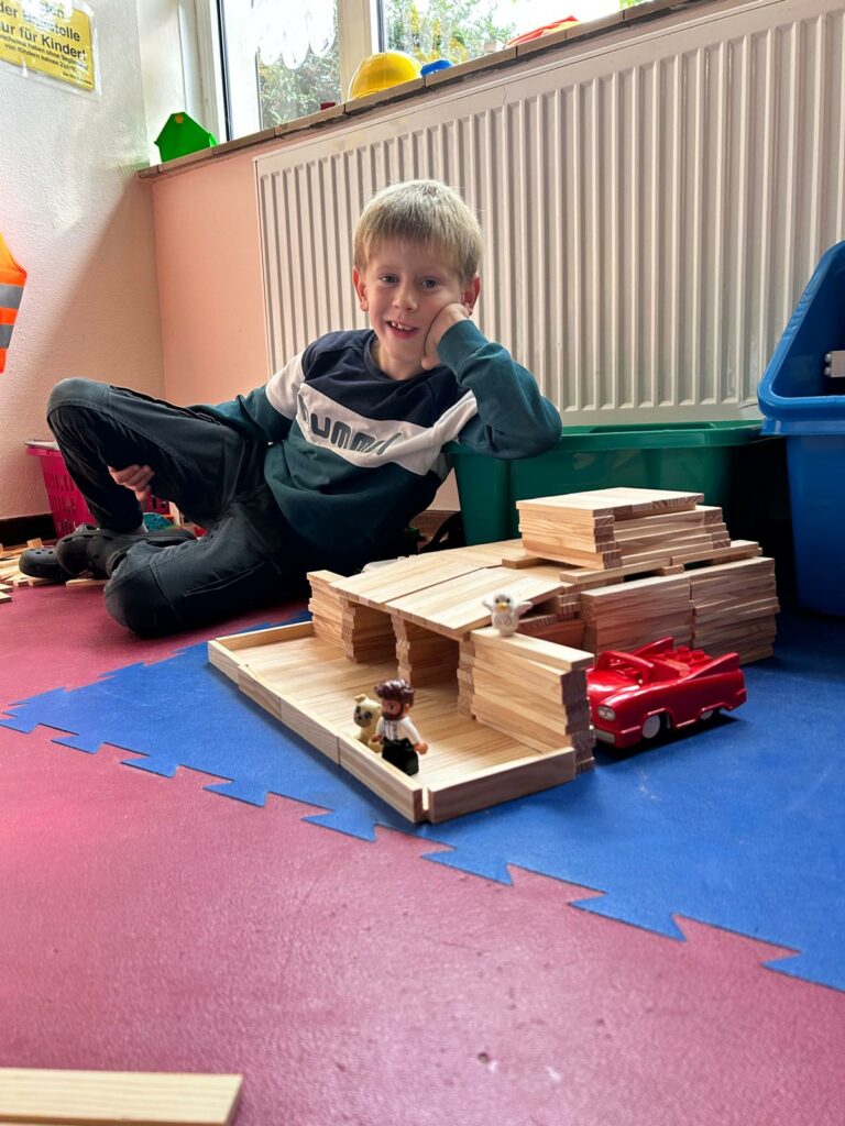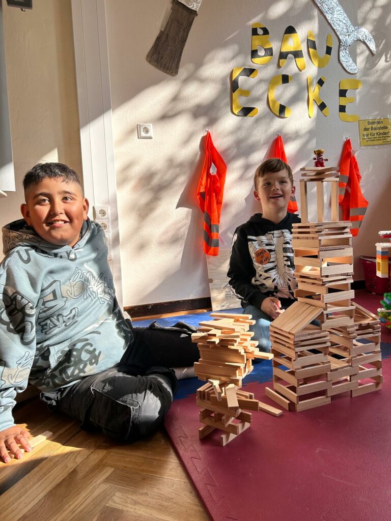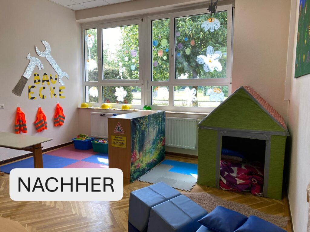 Bereits in den Sommerferien haben Frau Fischer-Rehnen und Frau Rehnen den Betreuungsraum farbenfroh umgestaltet und unter anderem die Bauecke und das Atelier verschönert bzw. neu eingerichtet. Die Bauecke wurde dann vor ein paar Wochen vom Förderverein noch mit Kapla-Steinen ausgestattet. Die Kinder spielen mit großer Begeisterung in der neuen Bauecke und bauen tolle Kunstwerke!