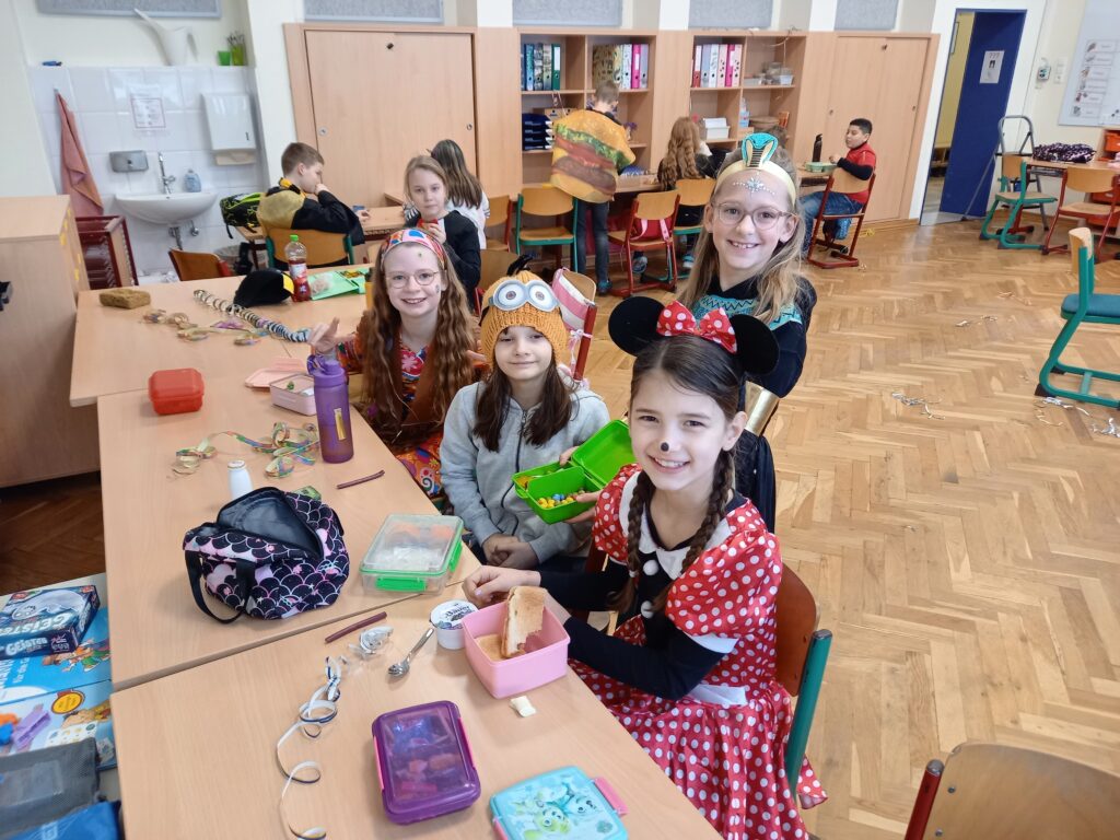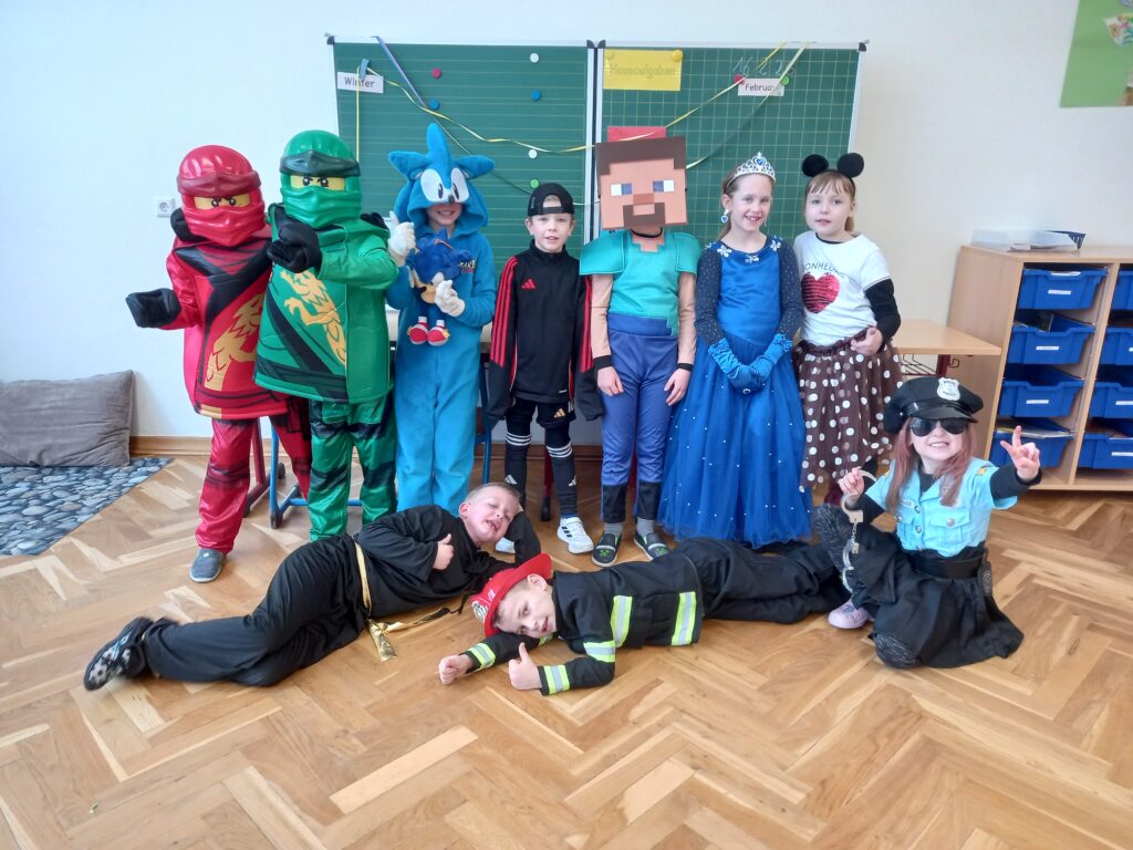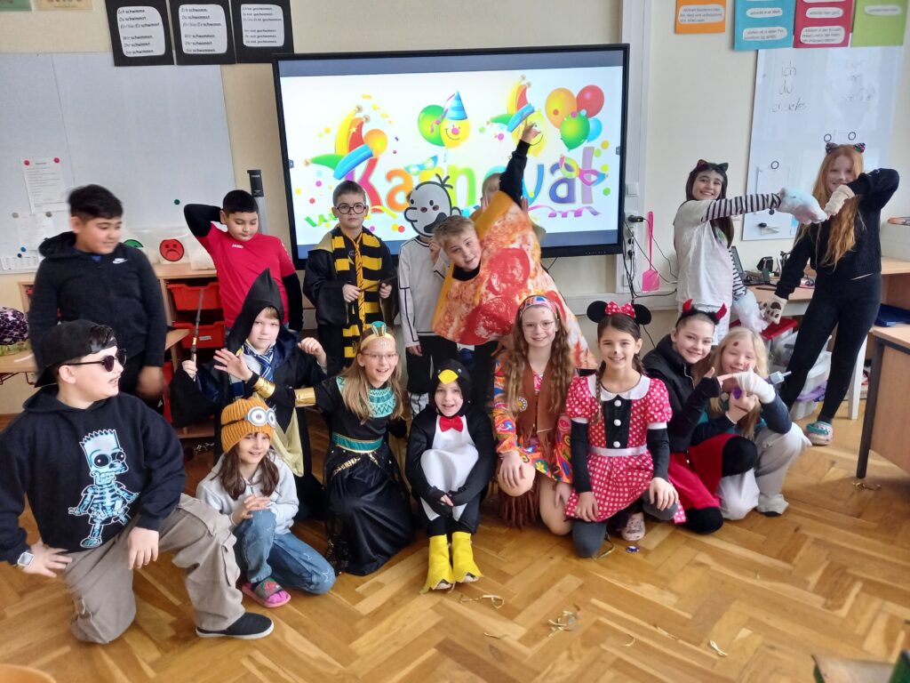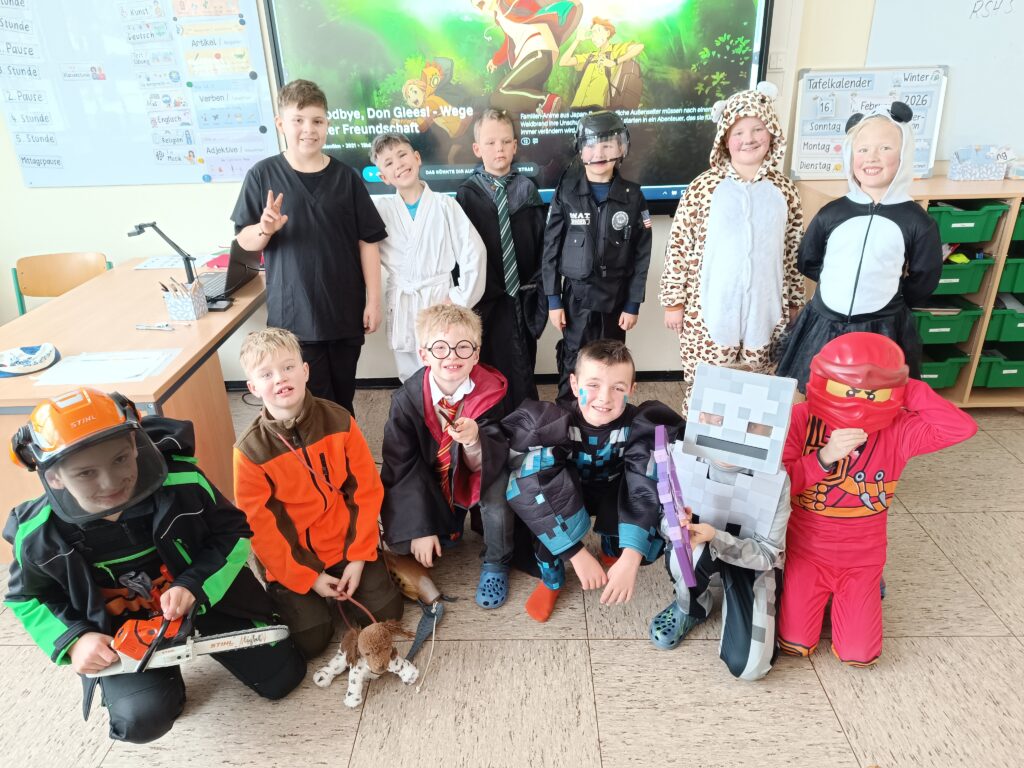 Am Rosenmontag waren die Kinder wie immer toll verkleidet und haben stolz ihre Kostüme präsentiert. In den einzelnen Klassen und während der Betreuung wurde ausgiebig gefeiert, gespielt und genascht.